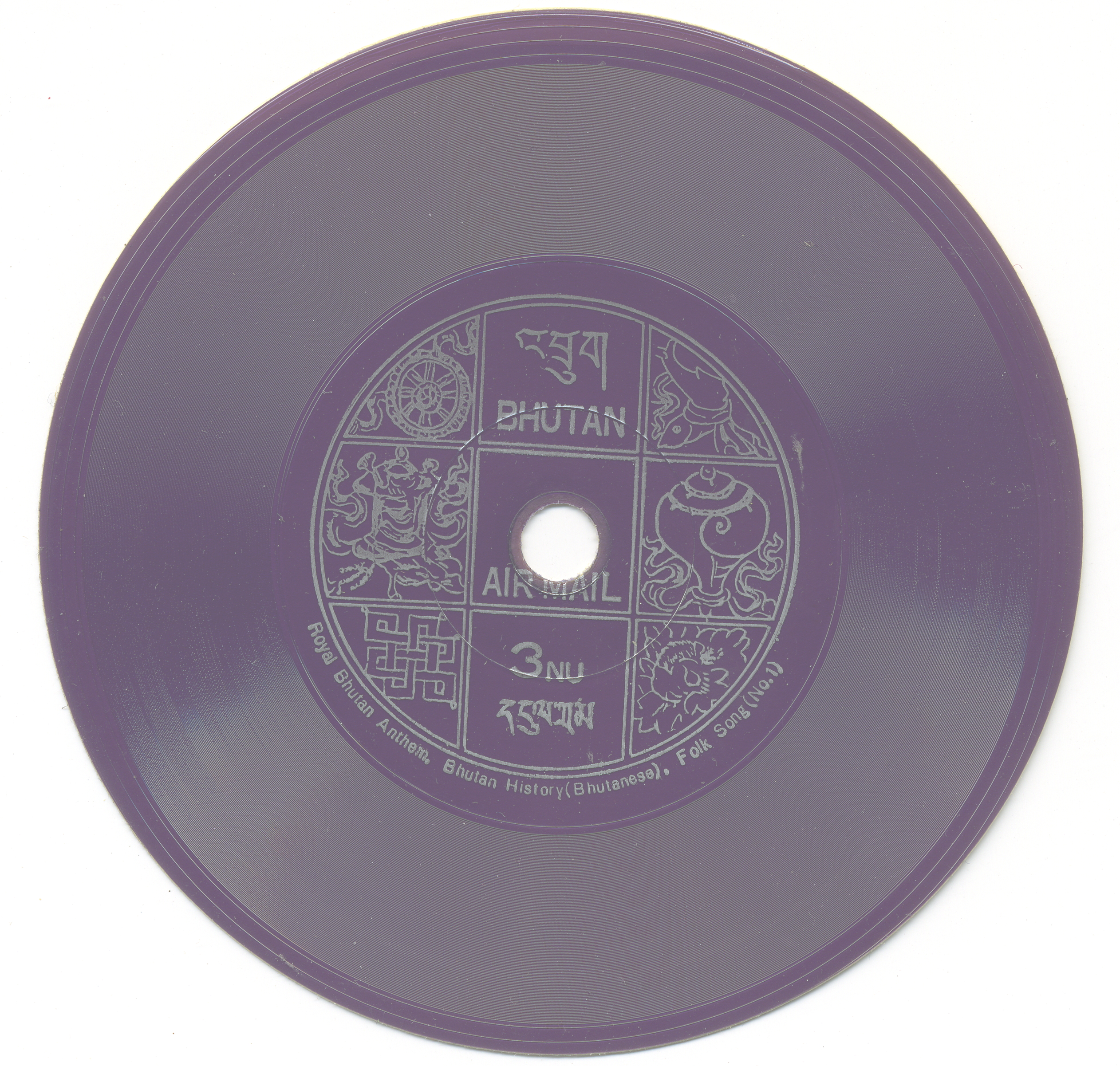 Lot #1455 Bhutan 152-152F – Phonographic Records Issue. This small nation shocked the philatelic world with the release of this 1973 issue. Playable recordings of Bhutanese national anthem, history and folk songs. Unused self-adhesives, fresh and unplayed. Rarely seen. Scott Cat. $375