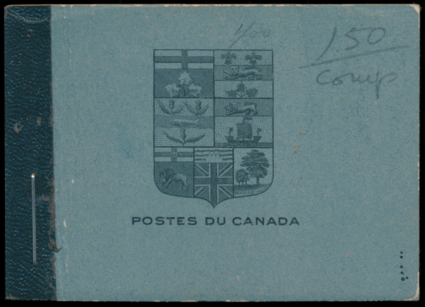 Lot 237 Canada #BK9a 1922, Admiral French booklet, complete, with one pane of four and two labels each of 1c yellow, 2c yellow green, and 3c brown, with interleaving, usual creases and some pencil notations on front and back cover as often found, fine-very fine. Unitrade CV$1,300, sold for C$5,200.00 plus 17% buyer’s premium.