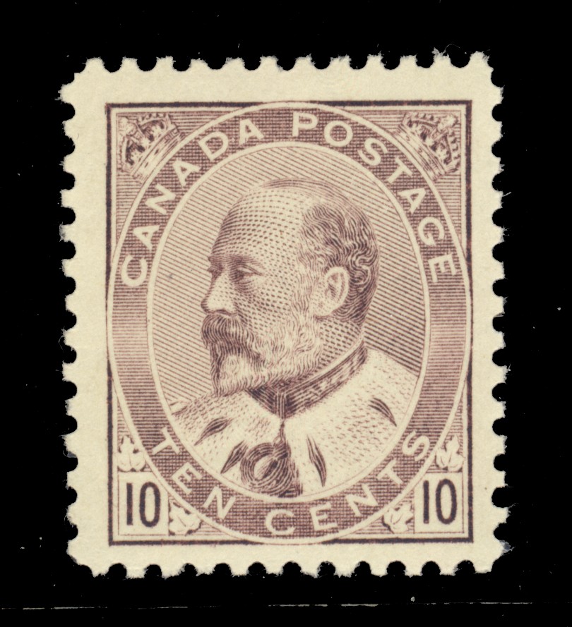 1903 10¢ pale lilac Edward, an attractive shade which is post office fresh, very fine, never hinged. The 10¢ value is especially elusive to find this nice. Unitrade C$1800.