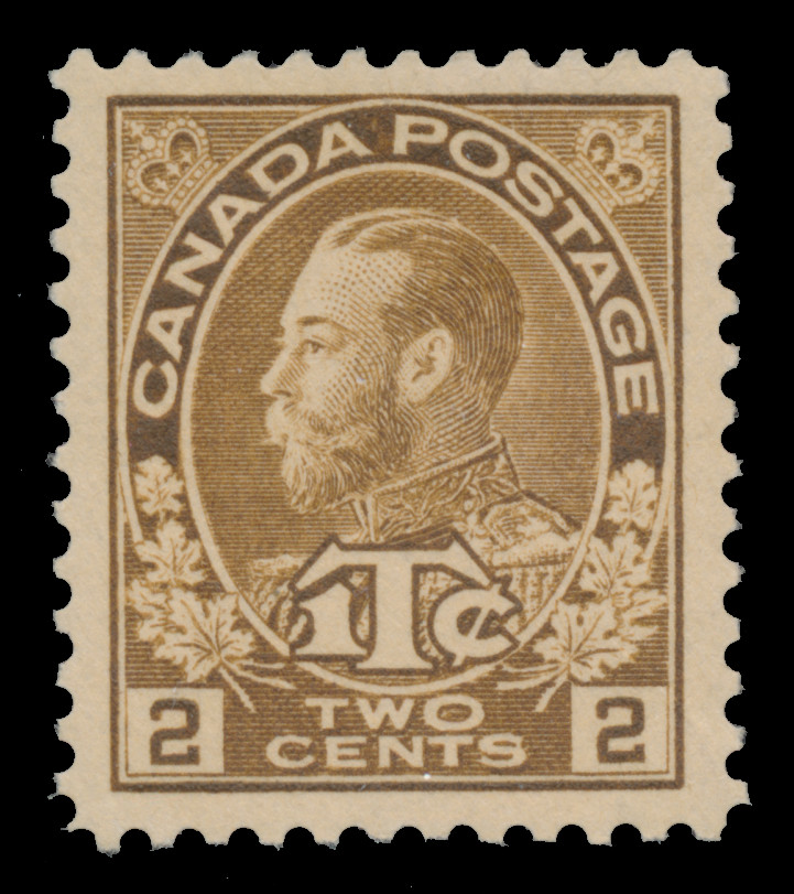 Lot 291 Canada #MR4a 1916, 2c+1c brown Admiral War Tax, Die I, never hinged, desirable bright shade, wonderfully-centred amidst balanced margins, one of the most elusive of the Admiral issues, particularly in such choice quality, very fine; ex Smallman, with 2016 Greene Foundation and 2019 (VF-XF 85) P.S.E. certificates. Unitrade C$4,500.