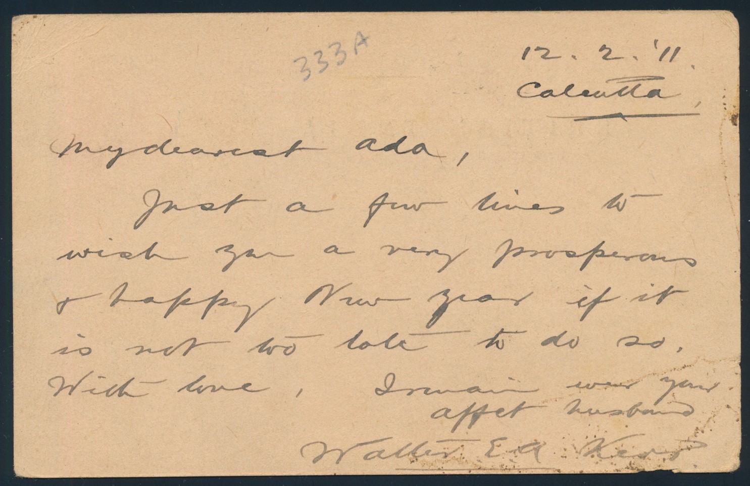 Lot 1549 India FEB.11.1911 World’s First official Air Mail Flight, Allahbad to Naini Junction. A large piece of a cover franked with a 3r Queen Victoria, cancelled by a large magenta First Aerial Post cachet, plus a second free strike, reverse is addressed to Glass Bangles Merchants in Firozabad (Dist. Agra). A few hinge remnants, still a scarce and possibly unique franking for this popular flight. From the The Leon Victor Pont Collection of Early India, New Zealand and Worldwide Pioneer Flight Covers. Estimate $100, sold for C$950.00 plus 17% buyer’s premium.