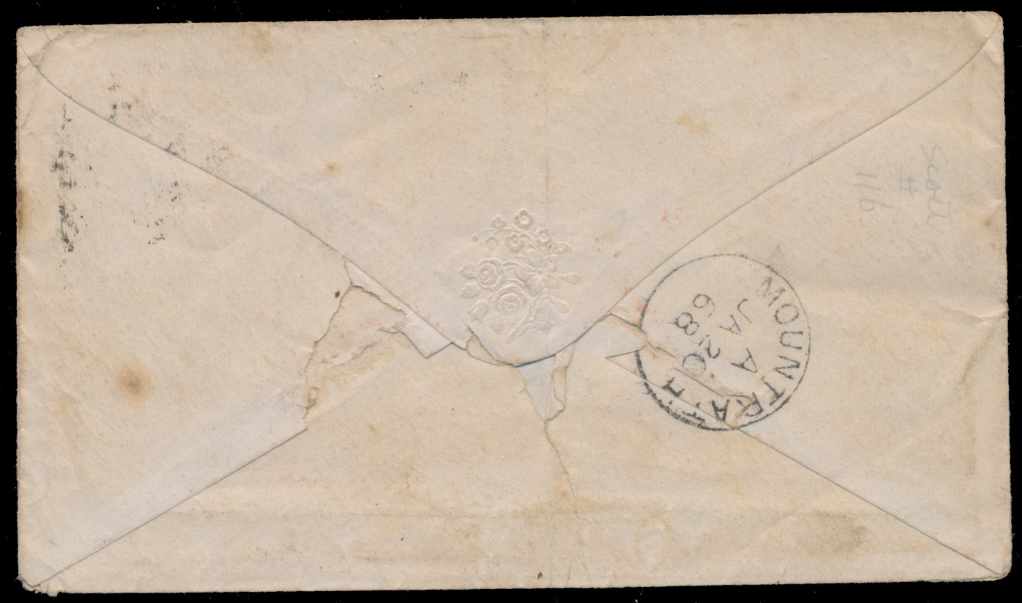 Lot 626 Tasmania, 1867, 1d Soldier’s Rate cover to Ireland, franked with 1p brown red, struck with red GENERAL POST OFFICE / HOBART / 25 NO 25 / 1867″ c.d.s. at right, signature and endorsement at left from a Major commanding the 2/14 Regiment, endorsed along top by sender, a Private in the Regiment, reverse with Mountrath JA.20.1868 receiver, back shows typical signs of rough opening, likely by the addressee anxious to hear from their relative, a few stains, adhesive oxidized, else fine and scarce. (Scott 11b). Estimate C$350, sold for C$800.00 plus 17% buyer’s premium.