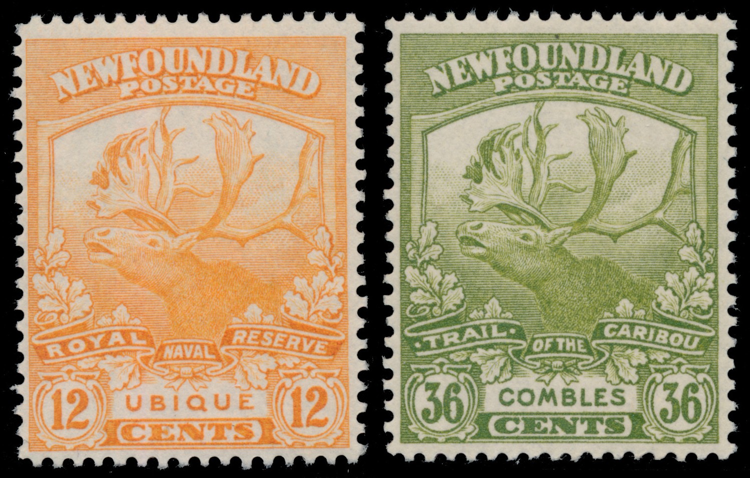 Lot 331 Newfoundland #115-126 1919, 1c green to 36c olive green Trail of the Caribou, never hinged, a carefully-selected set, unusually well-centered, all with fresh colours and full original gum, a challenge to assemble in such quality, very fine to extremely fine. Unitrade CV$800, sold for C$800.00 plus 17% buyer’s premium.