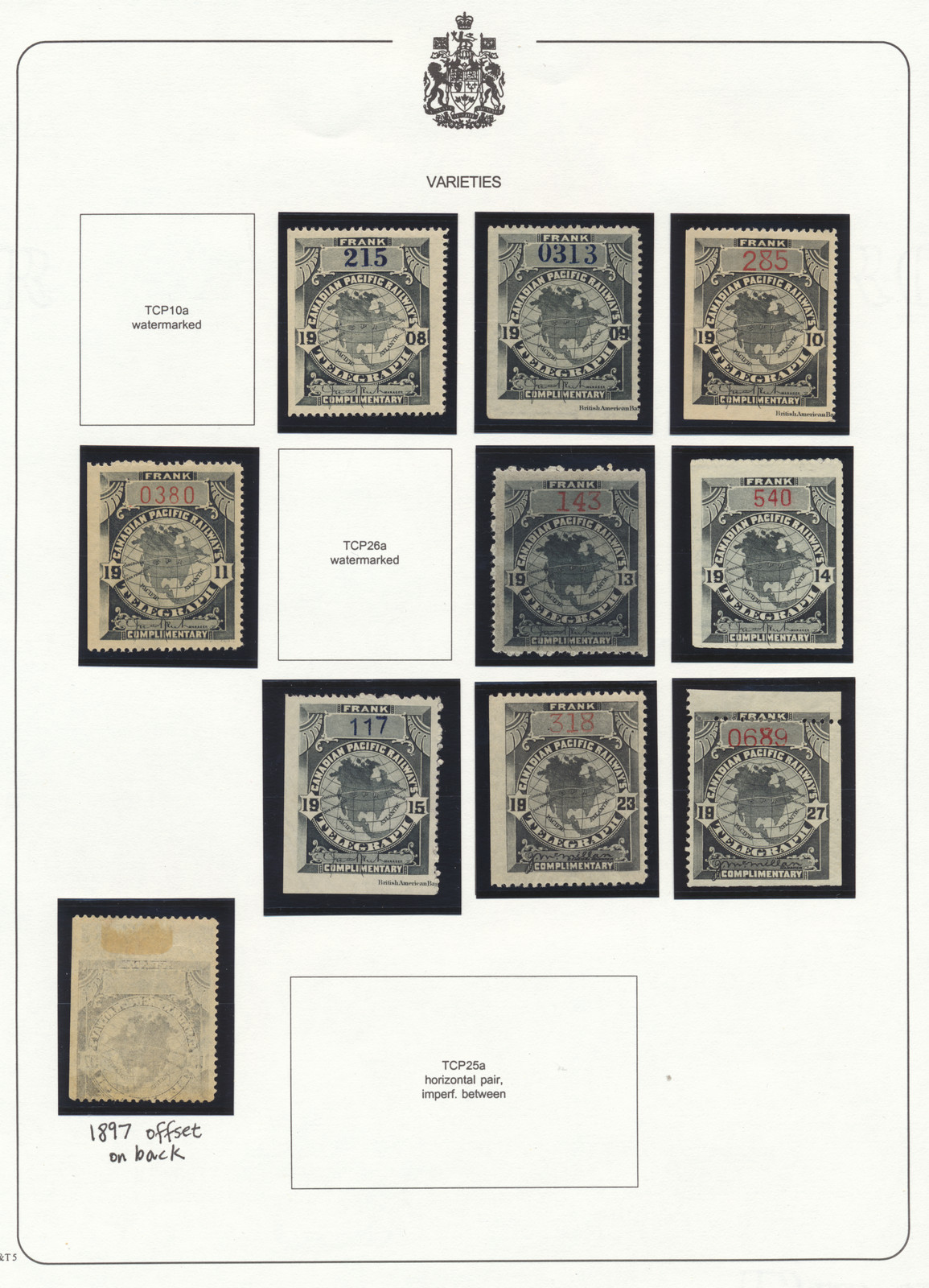Lot 377 Canada #TCP10a/TCP40var 1897–1927, Canadian Pacific Railways Telegraph frank varieties, including watermarked issues, highlighted by the better 1914 and 1915 franks (catalogue value $255), a 1923 bottom double print (c.v. $225), and an unusual 1897 issue showing a clear offset on the reverse, a fine and desirable companion group to the full set offered in this sale (Lot 376), fine to very fine. van Dam CV$960, sold for C$1,000.00 plus 18% buyer’s premium.
