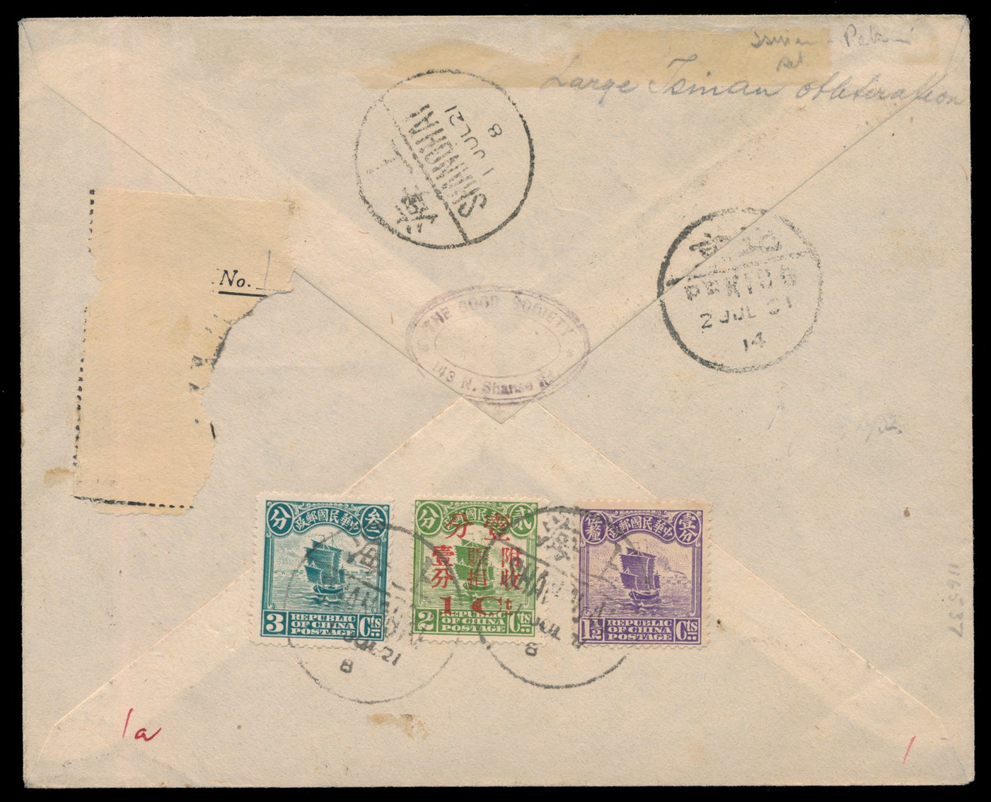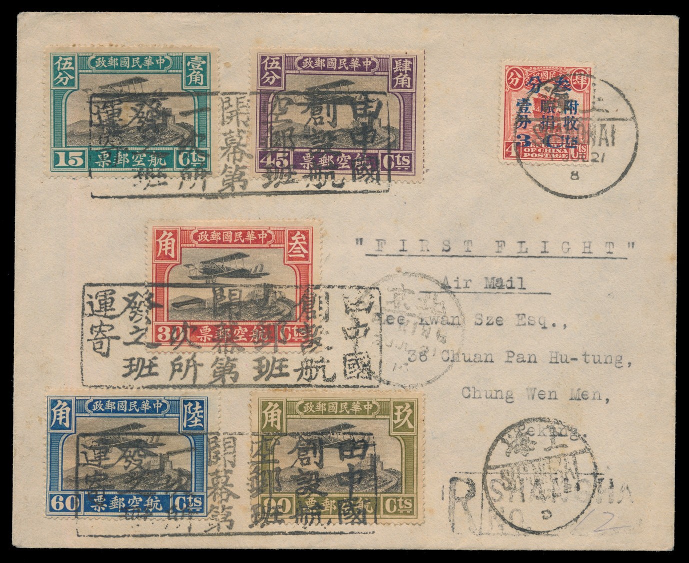 Lot 741, China 1921 Air Post set on registered airmail cover Shanghai to Chung Wen Men