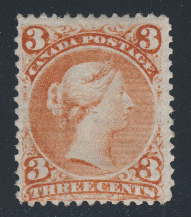 Lot 85, Canada #33 3c bright red Large Queen on laid paper, unused — Realized $20,700