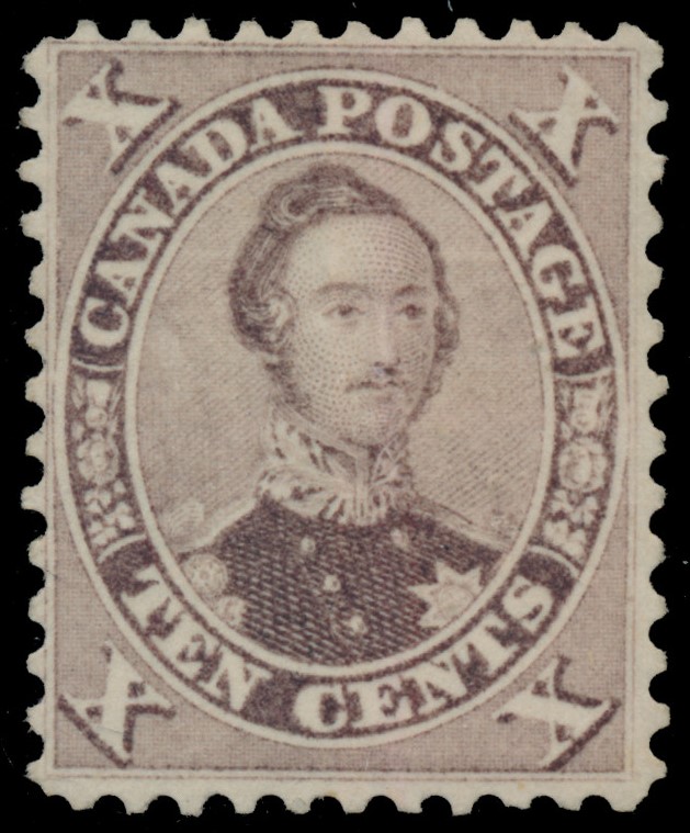Lot 64, Canada 1859 ten cent brown Consort, Fine hinged, sold for C$555