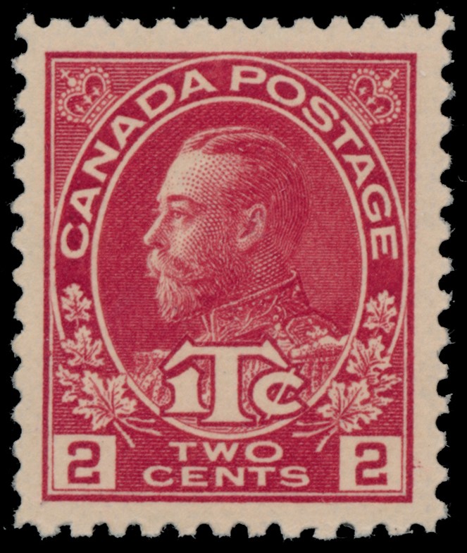 Lot 275 Canada #MR3a 1916, 2c + 1c carmine Admiral War Tax, never hinged, exceptional centering and bright fresh colour, a superb stamp in all respects, extremely fine; with 2024 Greene Foundation certificate. Unitrade CV$1,200.